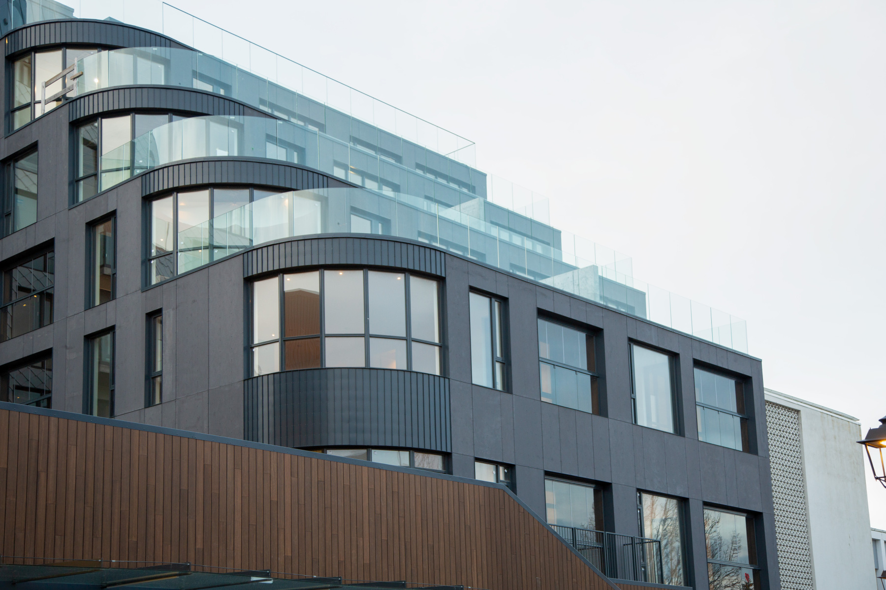 Samspil lita, forma og efnisvals styður við nýstárlegt og fjölbreytt útlit byggingarinnar og undirstrikar metnað í hönnun og framkvæmd. Útkoman er glæsileg bygging sem sker sig úr og mun án efa halda gildi sínu og ásýnd um langa framtíð.