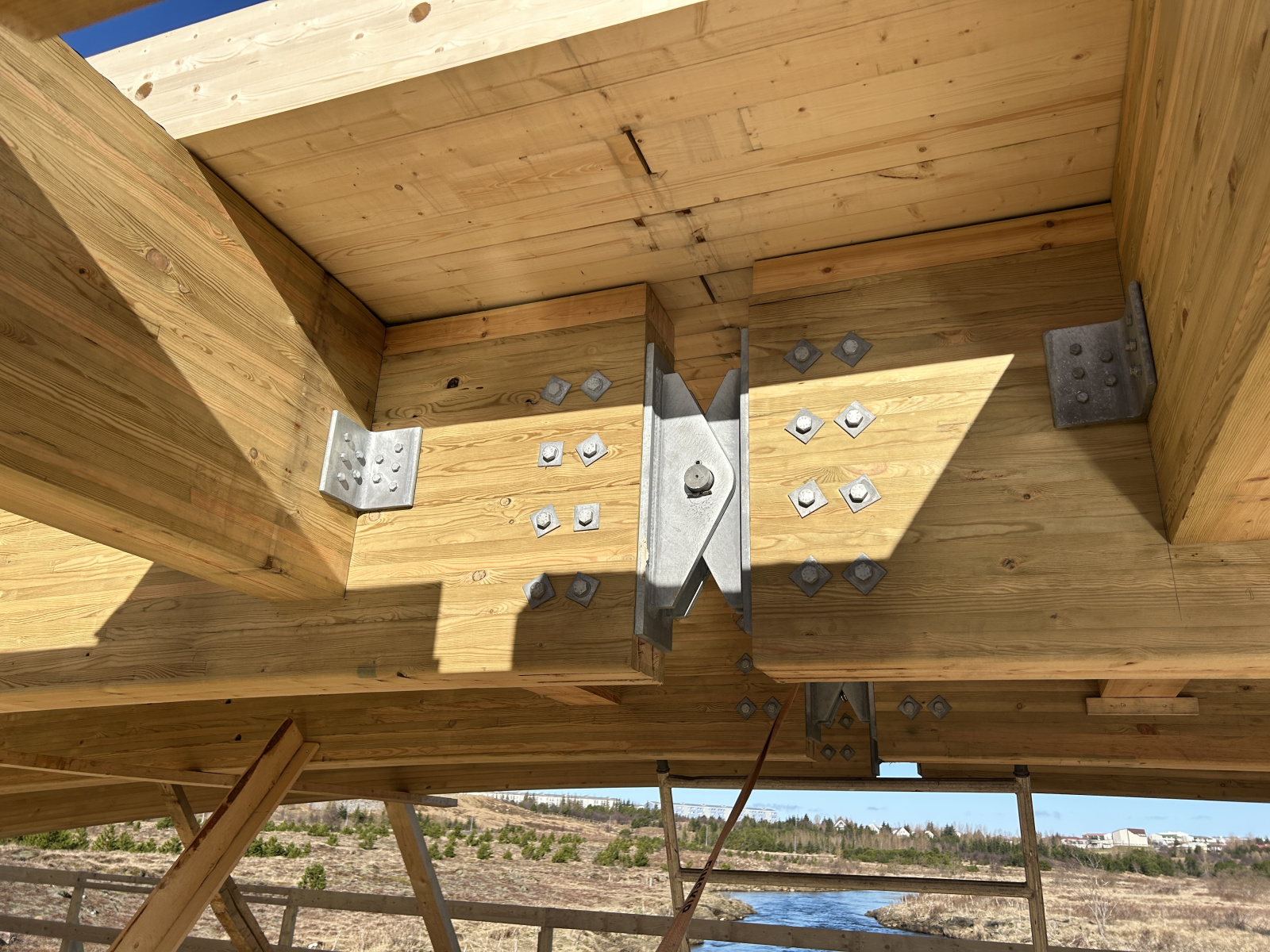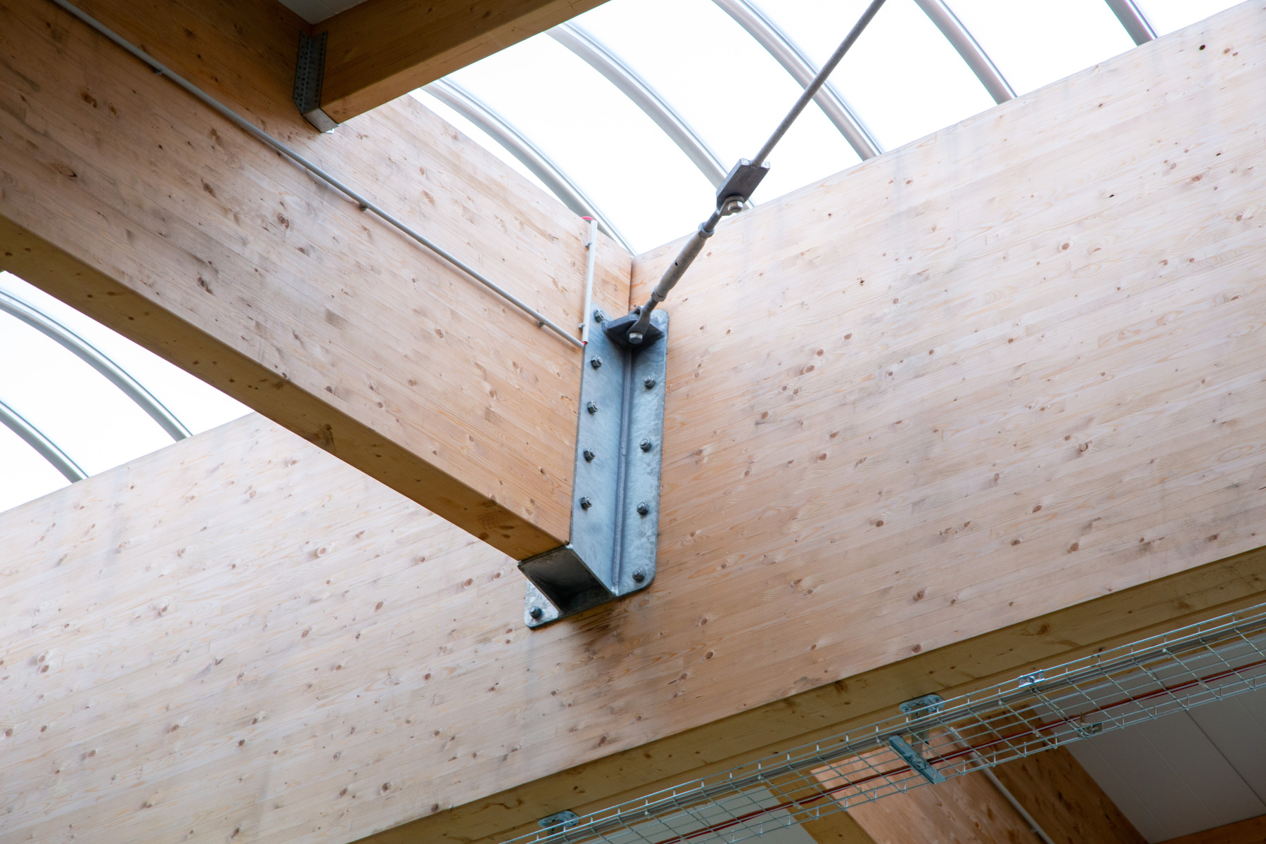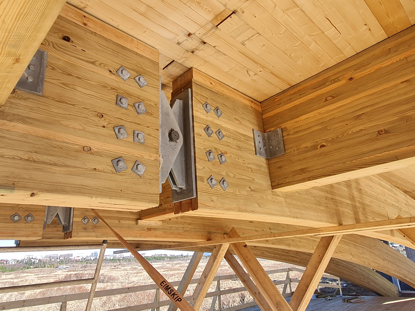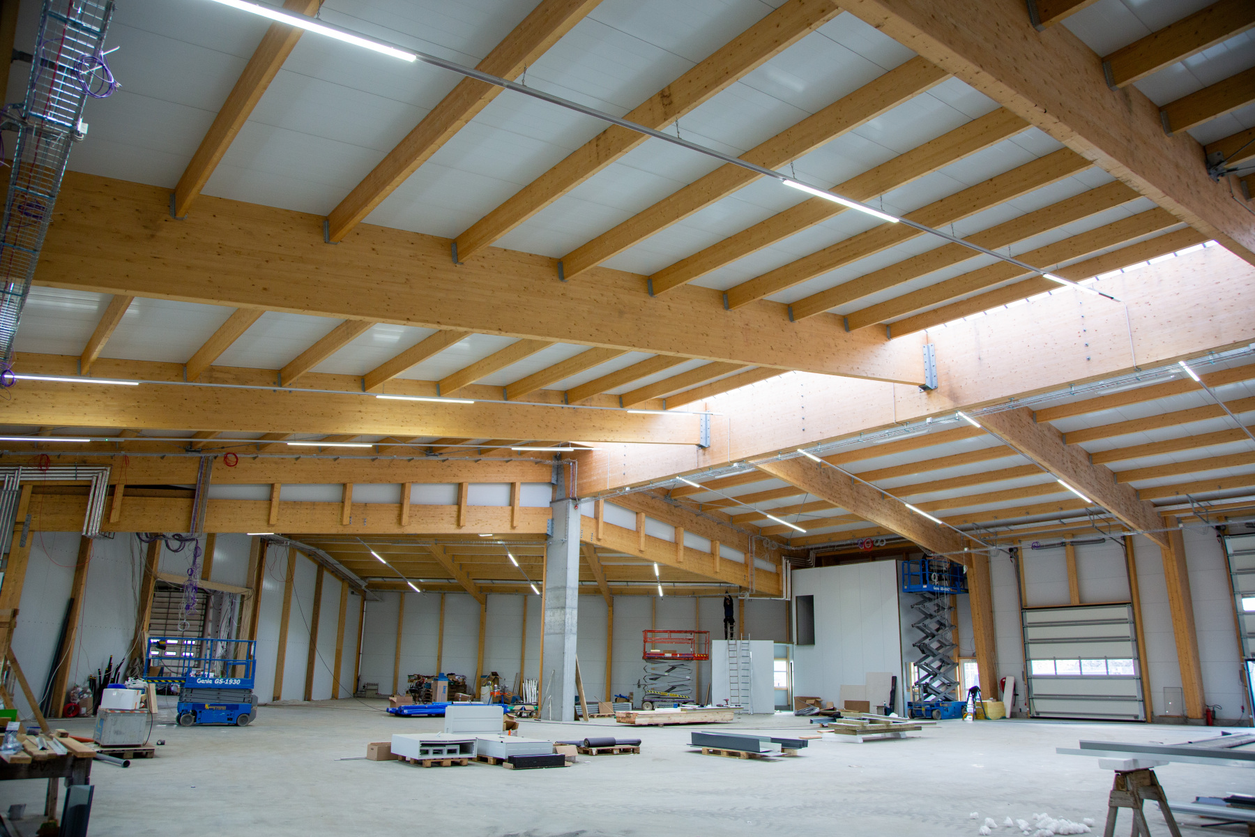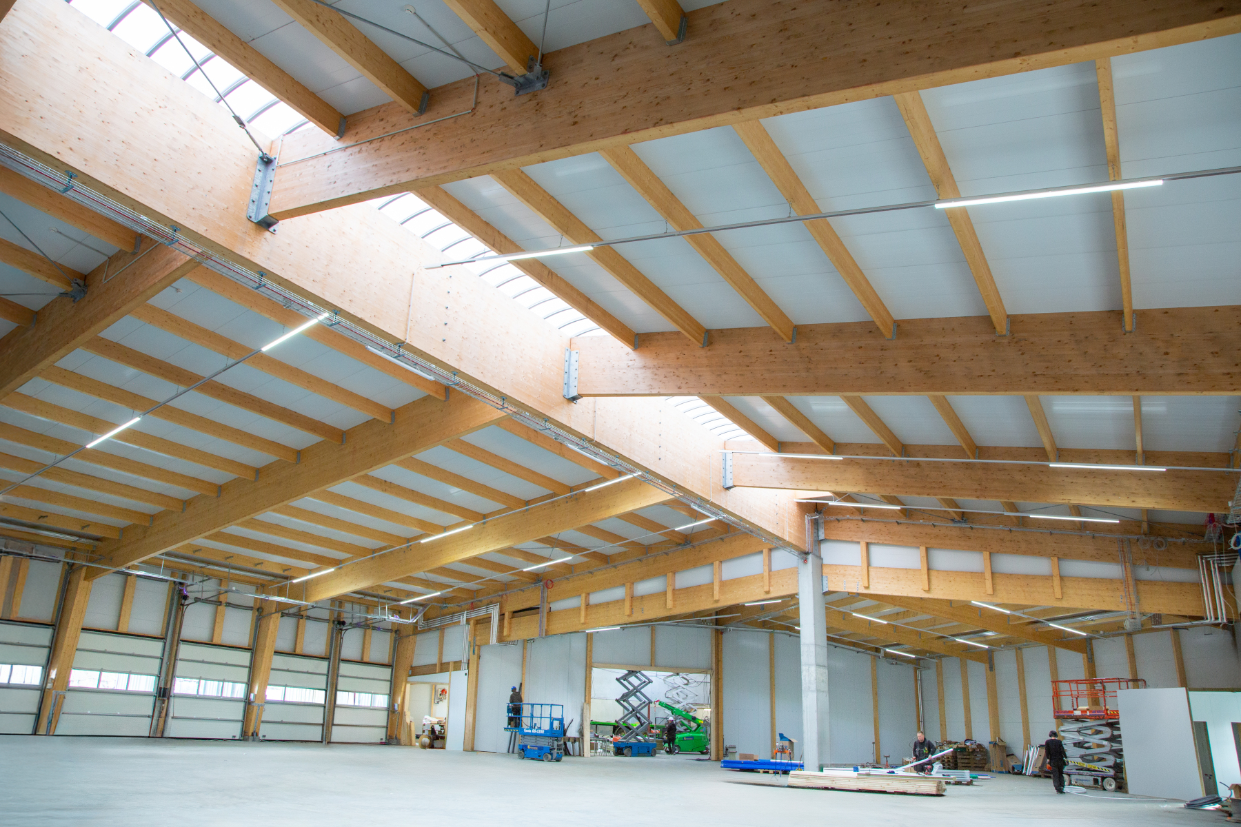Límtrésbitar verða vart mikið stærri en þessir. Hér er um að ræða gríðarstórt og metnaðarfullt iðnaðarhúsnæði þar sem burðarvirki úr límtré fær að njóta sín til fulls. Stórir spennir, styrkur og nákvæmni í útfærslu sýna vel þá möguleika sem felast í límtré þegar ráðist er í umfangsmikil mannvirki.