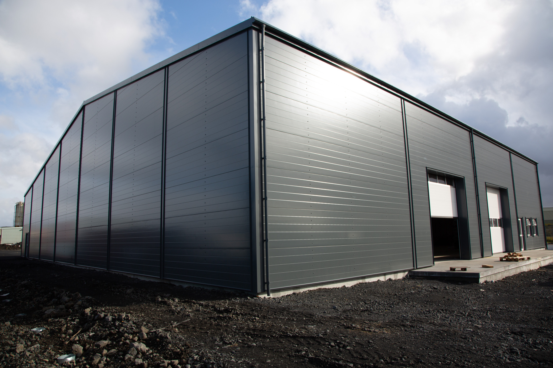 Byggingin er reist úr samspili límtrés, steinullareininga og steypu, sem saman mynda endingargóða og hagkvæma lausn fyrir krefjandi rekstur. Fjölmargar Krispol iðnaðarhurðir tryggja skilvirkt aðgengi og góða nýtingu rýma. Heildarniðurstaðan er öflugt iðnaðarhúsnæði sem er byggt til að standast álag og kröfur framtíðarinnar.