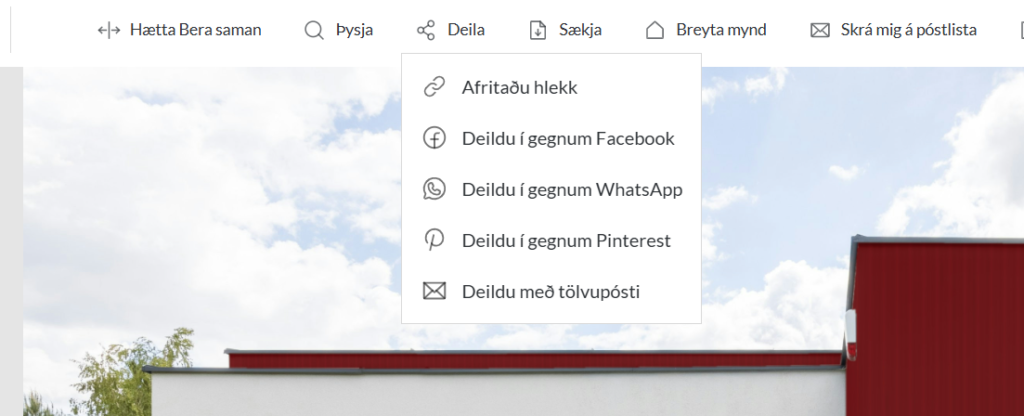 Svo er hægt að senda með email en þá kemur hlekkur inn á Roomvo ásamt pdf-i með mynd og upplýsingum um klæðningarnar sem um ræðir. Auðveldara verður það ekki.
